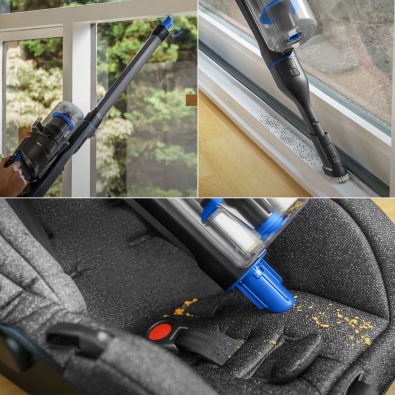 Müheloses Umschalten von Stiel- zu ausfahrbarem Handstaubsauger für das Reinigen von Boden bis Decke