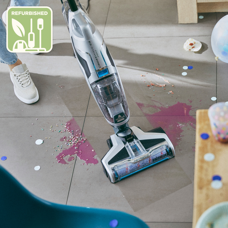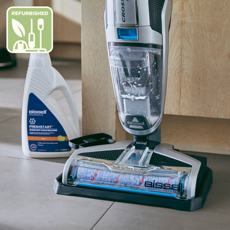 Der Refurbished CrossWave® C3 Pro saugt, wischt und trocknet gleichzeitig. Er sorgt für eine starke Absaugung von nassen und trockenen Verschmutzungen. Perfekt für die regelmäßige Reinigung unterschiedlicher Oberflächen von Hartböden und Teppichen, ideal für kleine und große Verschmutzungen auf Ihren Böden. Dank der elektronischen Steuerung mit den Fingerspitzen können Sie im Handumdrehen zwischen den Oberflächen wechseln und Wasser bedarfsgerecht dosieren. Im Gegensatz zu einem Mopp und Eimer hält unsere Doppelbehälter-Technologie Frisch- und Schmutzwasser getrennt. Daher reinigen Sie mit dem Refurbished CrossWave® C3 Pro Ihre Böden immer mit frischer Reinigungslösung. Das FreshStart™ Geruchsmanagementsystem bedeutet, dass die antimikrobielle Bürstenrolle und der Filter kontinuierlich arbeiten, um Gerüche zu verhindern und die Frische zu bewahren. Die mitgelieferte natürliche Mehrflächen-Reinigungsmittel (1L) beseitigt Gerüche und verleiht Ihrem Zuhause einen frischen Duft. Wenn Sie mit der Reinigung Ihrer Böden fertig sind, reinigt der Selbstreinigungszyklus nicht nur die Bürstenrolle, sondern auch das Innere des Geräts, sodass Sie selbst nach der Reinigung weniger Aufräumarbeit haben.