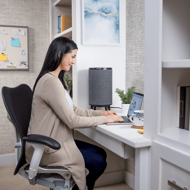 Genießen Sie Simply Clean Air™ (einfach saubere Luft) von einer Marke, der man sein fast 150 Jahren bei der Bodenreinigung vertraut, mit dem Luftreiniger BISSELL® MYair HUB. Dank seiner intuitiven Steuerung war es noch nie so einfach, saubere Raumluft zu bekommen. Luft strömt durch den Boden des Luftreinigers MYair™ HUB nach oben und durchläuft einen aus Vor-, HEPA- und Aktivkohlefilter bestehenden 3-in-1-Filter, der unerwünschte Allergene, Reizstoffe und Gerüche mühelos aus der Raumluft entfernt. Der Luftreiniger MYair™ HUB hat drei Lüftergeschwindigkeiten, die mit angenehmen Geräuschpegeln arbeiten. Die niedrigste Geschwindigkeit ist flüsterleise und eignet sich perfekt für Schlafzimmer. Darüber hinaus bietet dieser Luftreiniger eine Reihe von intelligenten Funktionen mit seinem eingebauten 2,4-A-USB-Ladeanschluss, der schlanken und modernen Form und dem einzigartigen, stufenlos regulierbaren Nachtlicht, das es Ihnen ermöglicht, die gewünschte Helligkeit auszuwählen, indem Sie den Schalter so lange gedrückt halten, bis die gewünschte Helligkeit erreicht ist. Er reinigt in nur 15 Minuten 10,1 m², damit erneuert er die Luft eines 10,1 m² großen Raumes mit Standardhöhe 4-mal pro Stunde. Ihr Nachttisch hatte nie einen besseren Freund als den Luftreiniger MYair™ HUB.