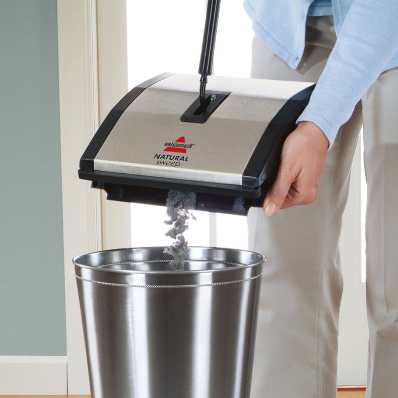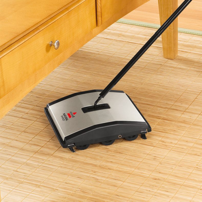 Der leichte und kompakte BISSELL Natural Sweep eignet sich zur effektiven Reinigung von Teppichen und Hartböden zwischendurch. Der Besen verfügt über zwei große Bürstenrollen und 2 kleine Eckbürsten am Fuß, die Schmutz an Kanten und in Ecken aufnehmen. Das 6-rädrige System stellt sich automatisch für eine optimale Reinigung auf allen Böden ein