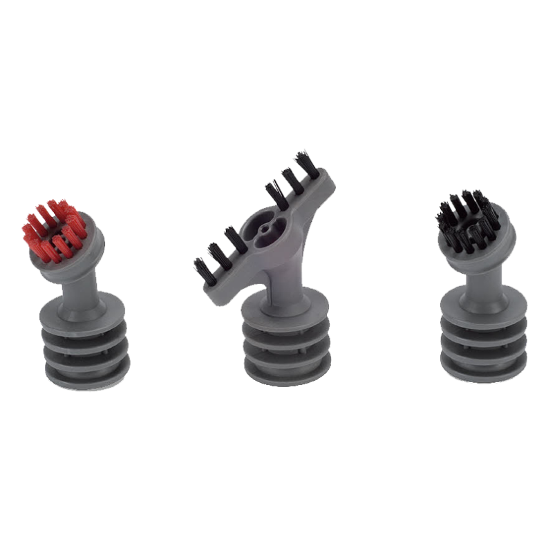 Die 2 Rundbürstenaufsätze eignen sich hervorragend zur Bewältigung von hartnäckigen Verschmutzungen und schwer zugänglichen Bereichen. Sie sind für einen bestimmten Einsatz farbcodiert: die rote Bürste ist für Sanitärbereiche und die schwarze Bürste ist für Küchen gedacht. Der Fugenaufsatz eignet sich besonders zum Schrubben kleiner Risse und Fugen.