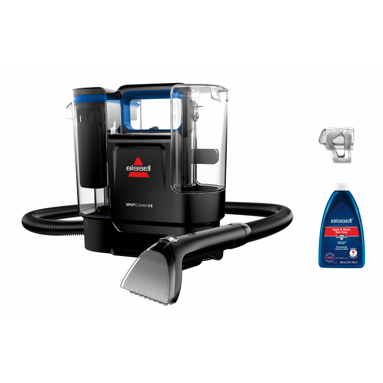 Wir stellen vor: BISSELL® SpotClean® C5 – Ihr leistungsstarker Begleiter, der hartnäckige Flecken mühelos entfernt. Dieser kompakte Fleckenreiniger verfügt über eine hervorragende Saugleistung und beseitigt Flecken aus Polstermöbeln, Teppichen und Fahrzeuginnenräumen. Das innovative Triple Action Reinigungssystem ermöglicht eine gründliche und effiziente Mehrflächenreinigung. Mit dem extralangen Schlauch (1,7 m) und dem 10 cm langen Aufsatz für hartnäckige Flecken erreichen Sie jede Stelle, und das mitgelieferte HydroRinse Selbstreinigungswerkzeug ermöglicht eine bequeme Nachreinigung. Das leichte und kompakte Design des SpotClean® C5 ermöglicht eine einfache Reinigung und Aufbewahrung.