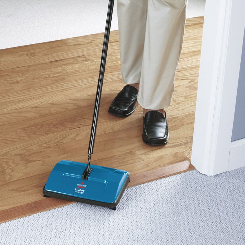 Bereinigen Sie Ihr Zuhause mithilfe des BISSELL Sturdy Sweep. Dieser manuelle Kehrbesen lässt sich leicht um Objekte und Möbel herum manövrieren. Der BISSELL Kehrbesen verfügt über vier kleine Eckbürsten, die Staub und Schmutz auf allen Oberflächen erfassen.